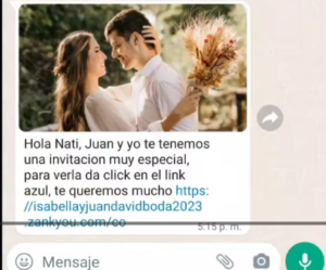 - Se te enviará un link con el mensaje de WhatsApp y foto de la invitación para que lo puedas compartir fácilmente a tus invitados.